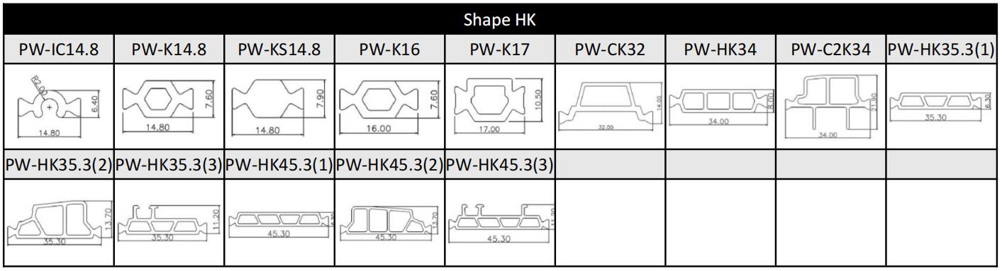 The shape HK thermal barrier polyamide strip can prevent the window frame from dust and water, has a better mechanical performance, is the first generation and easiest shape of insulating strips.